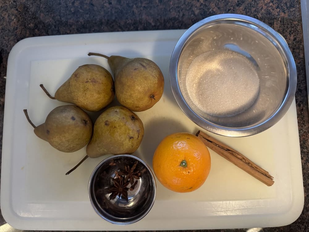 - Citrus Twist: Enhance the brightness of your poaching liquid by adding slices of orange, lemon, or even blood orange. The citrus will balance the sweetness of the pears and add a zesty aroma that feels especially festive during the holidays. You can also include a splash of orange liqueur, such as Grand Marnier, for an extra layer of complexity.