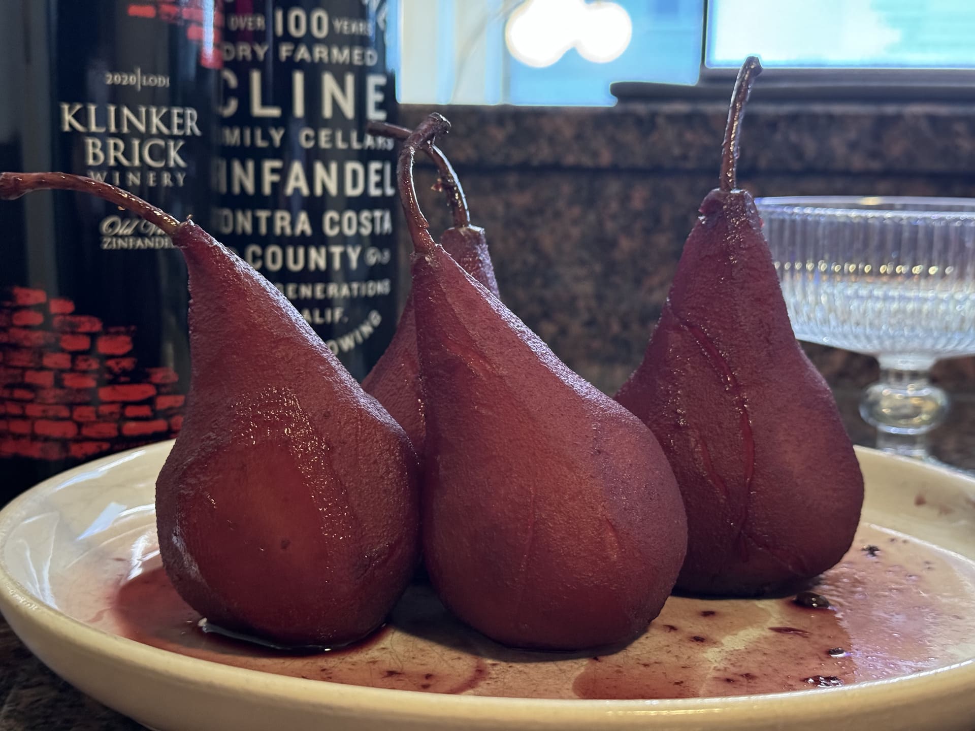 - Festive Flavors: Few desserts capture the spirit of the season quite like Zinfandel-poached pears. The rich, fruity essence of the wine combines with the warm, cozy spices of cinnamon, clove, and star anise to evoke memories of mulled wine and holiday baking. Add a touch of citrus for brightness, and you have a dessert that tastes like the holidays in every bite.